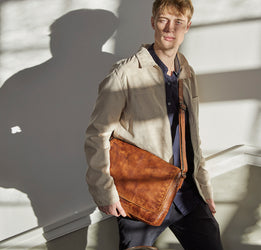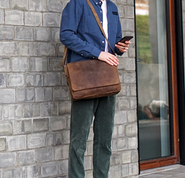 Stilren arbejdstaske i rustikt læder: