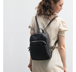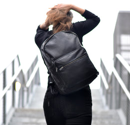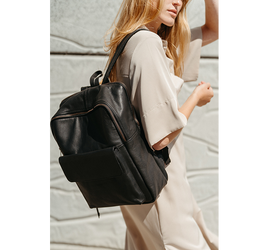 Stilren rygsæk i blødt sort læder: