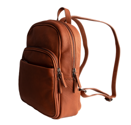 Denne læderrygsæk har to store rum. Det ene rum er foret og passer til en computer. Det andet rum kan anvendes til dokumenter, bøger, madpakke mv. Derudover har rygsækken to mindre lommer på forsiden. Den største lomme har magnetlukning, mens den anden lomme er mindre og med lynlås. Læder rygsækken har polstret ryg og justerbare skulderhanke. Læderet har fået en god overfladebehandling, så rygsækken er vandafvisende og praktisk.
