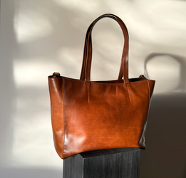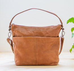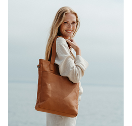 Vores skuldertaske er lavet i en slidstærk koskind med en god blødhed og naturlig struktur. Læderet er vegetabilsk garvet og derfor kromfri. Med tiden vil tasken få smuk patina.