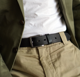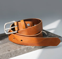 Dette bælte er lavet i vegetabilsk garvet kernelæder. Det betyder, at der i garvningsprocessen udelukkende er blevet brugt naturlige elementer som f.eks. mos og bark. Det slidstærke læder har fået en god olie- og voksbehandling, som giver en blød overflade, og bevarer læderets naturligt flotte udseende samt naturlige struktur. Læderet kommer fra europæiske tyre som er opvokset under gode forhold i Nord- og Mellemeuropa, og der er brugt læder fra tyrenes ryg og skuldre, da det er mest slidstærkt. Med tiden vil læderet patinere flot, blive blødere samt forme sig godt og behageligt efter din talje.