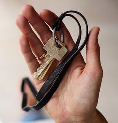 Vores stilfulde nøglering er lavet i et enkelt og klassisk design. Med sin korte læderstrop er nøgleringen nem at have med på farten - enten i lommen eller i tasken, hvor den ikke fylder meget. En perfekt måde at holde styr på dine nøgler på.