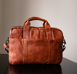 Praktisk computertaske i rustikt læder: