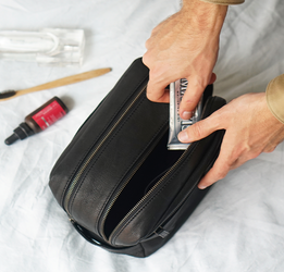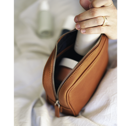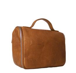 Toilettasken er lavet i vegetabilsk garvet læder af høj kvalitet. Læderet har naturlig struktur, og en dejlig blød overfladen. Toilettasken har en fast form, så der er godt styr på dine toiletsager.